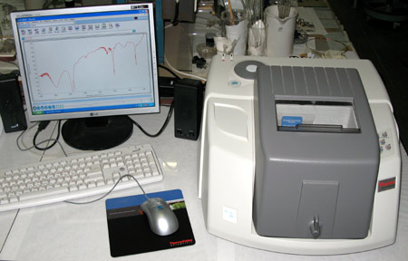 Фурье-ИК спектрометр Nicolet 380 Thermo Electron Corporation, США Прибор предназначен для ИК-спектроскопического исследования твердых, жидких и газообразных веществ. Основные технические характеристики: Спектральный диапазон: 4000-400 см-1; Отношение сигнал/шум: не менее 1500; Точность по волновому числу: 0.01 см-1; Скорость сканирования: 0.158–6.330 см/с; Количество скоростей сканирования: 15; • Укомплектован приставкой НПВО (от 4000 до 600 см-1); • Универсальное программное обеспечение OMNIC, позволяющее проводить сбор и обработку данных, а также идентификацию соединений по встроенным библиотекам ИК-спектров, общим объемом более 150 000 спектров Сведения об аттестации: Зав. № прибора AGJ0700541, инвентарный Ф56227 Поверка от 27.11.2024, действительна до 28.11.2025, свидетельство С-ТТ/27-11-2024 /391743808
