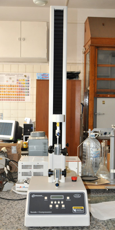 Прибор для исследования механических свойств адгезивов при растяжении TT-1100 Cheminstruments, США Прибор ТТ-1100 для испытания прочности на разрыв – это универсальный измерительный прибор, разработанный для испытания различных материалов. Этот прибор способен проводить тестирование различных характеристик материала при комнатной температуре, включая: прочность на разрыв, отслаивание под углом 90° и 180°. Данный прибор разработан в соответствии с требованиями тестирующих методов стандартов PSTC, ASTM, TLMI и др. Основные характеристики: • 2-строчный ЖК-дисплей показывает максимальное, минимальное и среднее значения измеряемого параметра. • Скорость отделения – от 1.3 до 64 см/мин. • Динамометрический датчик 10 кг обеспечивает точность до ± 0.1%. • Максимальное расстояние между зажимами – 82 см. • Расстояние от центра зажима до опоры составляет 8.9 см. • Температура эксплуатации – от 0 до 70°С. Включает: • Систему регистрации данных. Система регистрации данных ChemInstruments EZ-100, которая будет обеспечена после дополнительной поставки – встроенная программа для измерения силы, которая сочетает точность и простоту использования. Эта система регистрирует усилие отделения испытываемого образца, в цифровом виде отображает его на дисплее, а также хранит полученную информацию в своей памяти. • Показывает максимальное, минимальное и среднее значения измеренного усилия. • Хранит в памяти значения 20 испытаний, которые позволяют технологу анализировать ранее испытанные материалы. • Данные могут экспортироваться в компьютер через разъем RS-232, имеющийся на приборе. • Усилие измеряется в граммах, килограммах, унциях, фунтах или ньютонах. • Процессор фиксирует усилие отрыва со скоростью 400 замеров в секунду. • Графическое отображение результатов испытания. • Статистический анализ результатов испытания